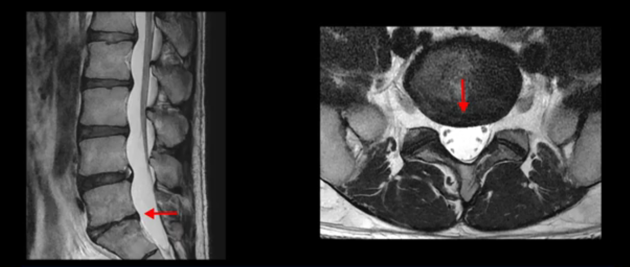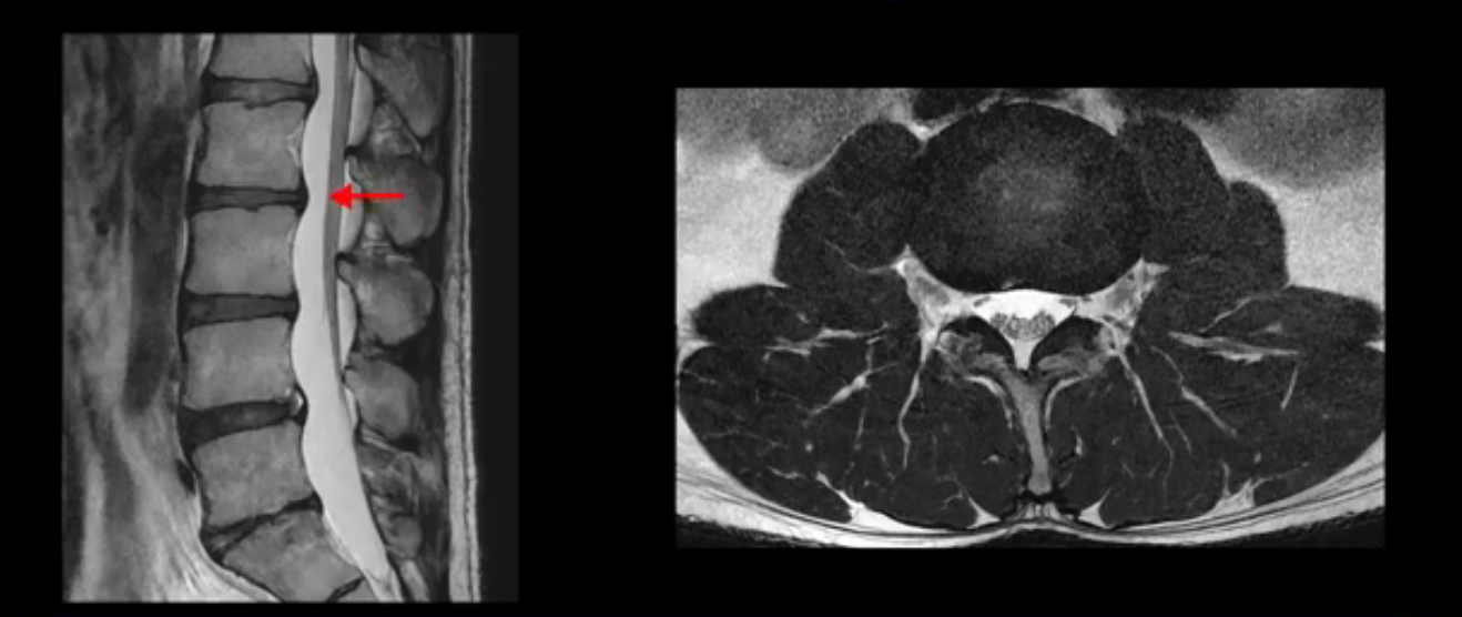 그럼 MRI를 자세히 봤으니까 이제 이 환자의 증상은 실제 왜 생기고 어떤 문제 때문에 아픈지에 대해서 차분히 설명을 드리도록 하겠습니다. 이 환자분의 진짜 통증의 원인은 무엇일까요? 이건 디스크의 문제가 아닙니다. 이 환자분의 진짜 통증의 원인은 허리의 기능이 완전히 무너진 겁니다. 허리의 기능 중에 가장 중요한 부분을 차지하는 게 근육인데, 이분의 근육 기능에는 오래 전부터 문제가 많았습니다. 이분은 작년에 앉지 못하고 양쪽 다리가 저리는 심각한 증상이 발생했는데요. 그런데 이런 증상이 발생하기 훨씬 이전부터 운동을 조금만 무리하면 허리가 뻐근하고 아픈 증상들이 있었습니다. 10년도 더 되는 오랜 기간 동안 허리가 조금씩 아프고 만성적으로 안 좋은 상태였는데, 6개월 전 어느 날 무리한 운동을 한 후에 허리와 근육의 기능적인 문제가 한계선을 넘어가니까 더 심한 증상들이 쏟아져 나오는 거죠.