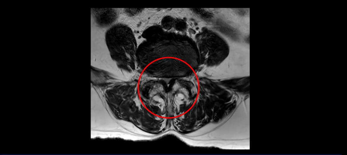 먼저 이분 MRI를 보고 자세히 설명해 드린 후 어떻게 허리 여러 마디에서 협착과 전방전위로 신경이 심하게 눌려 보이는 환자가 수술 없이 좋아질 수 있는지, 또 치료는 어떻게 하는지 설명해 드리겠습니다.