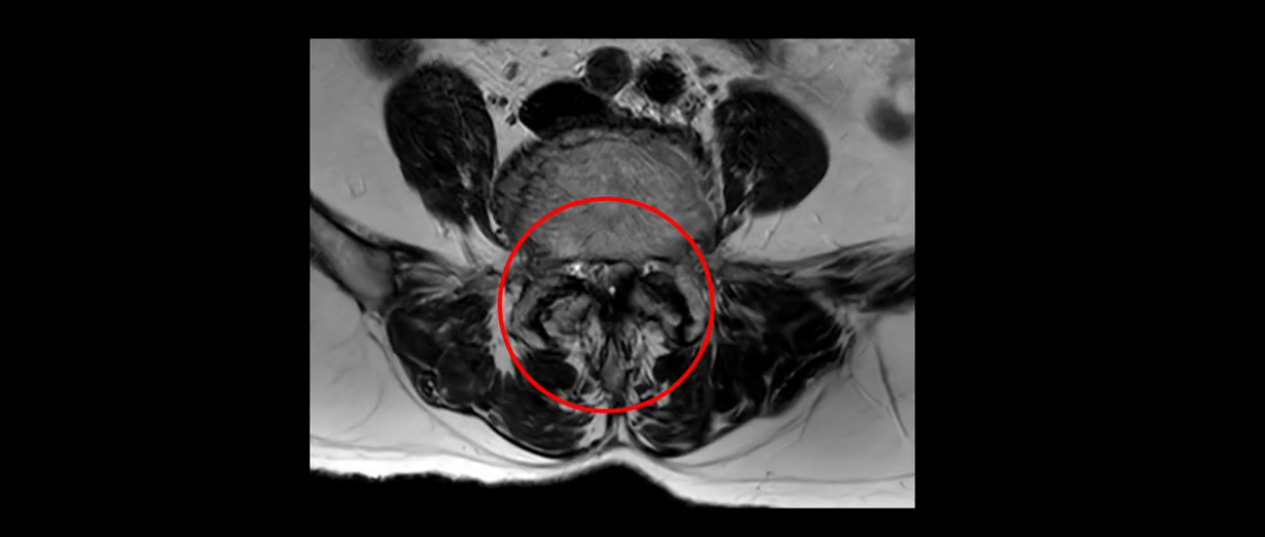 이분 MRI 보시면 허리 3마디의 퇴행이 매우 심합니다.