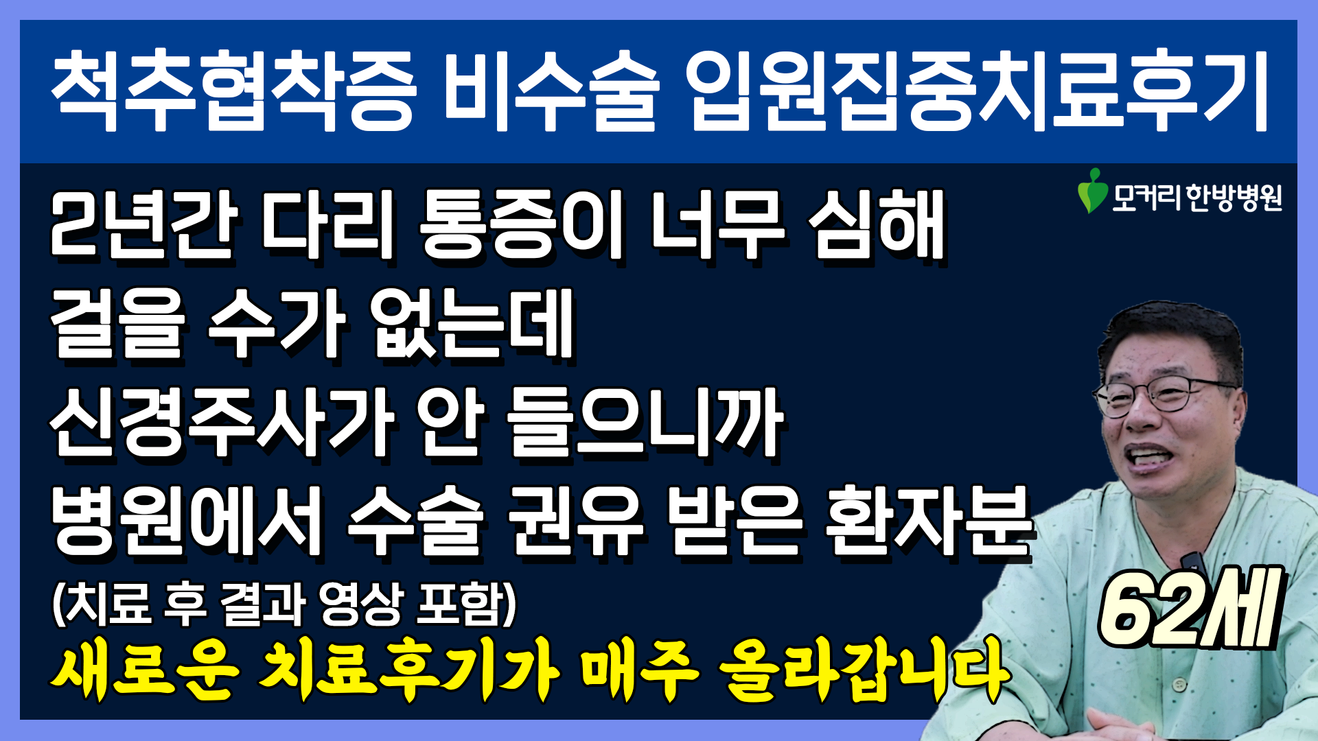 그런데 협착증이라는 건 10년, 20년, 30년 이렇게 오랜 기간 근육이 줄어들고 약해지고 문제가 생기면서 발생하는 것이기 때문에 근육치료를 간단하게 몇 번 받는다고 해서 이런 오래된 근육 문제가 바로 해결되는 것이 쉽지 않습니다. 그래서 통원치료보다는 입원치료를 권하는 겁니다.