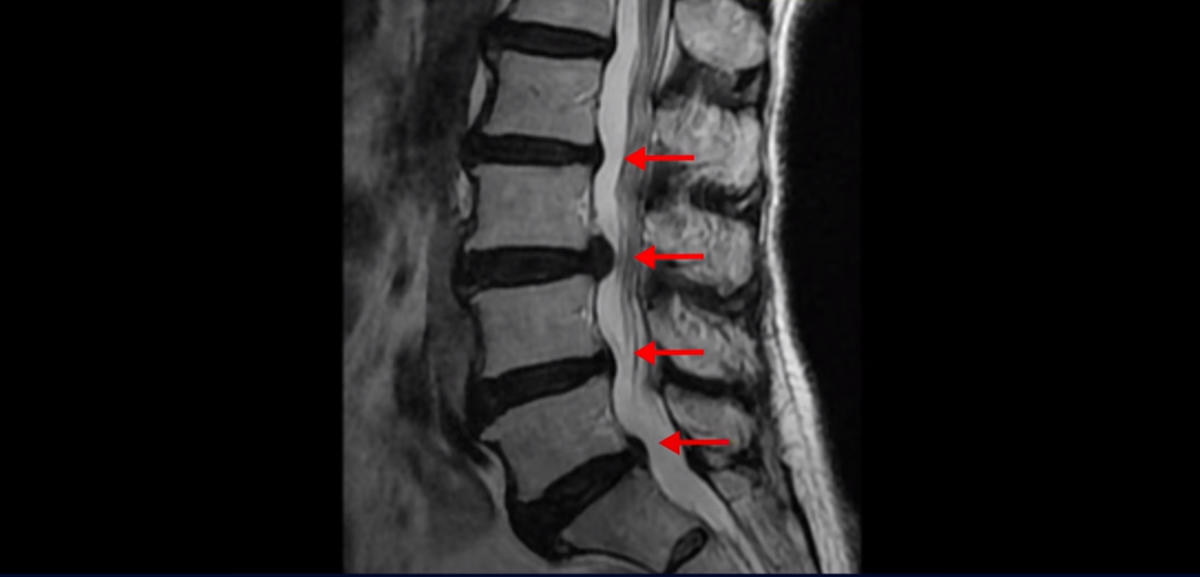 먼저 이분 MRI 보면서 간단히 설명 드린 후 어떻게 신경이 눌려서 수술해야 된다는 환자를 수술 없이 치료할 수 있는지 또 치료는 어떻게 하는지 자세히 설명 드리겠습니다. 이분 허리 MRI를 보면 여러 마디가 퇴행되어 있고